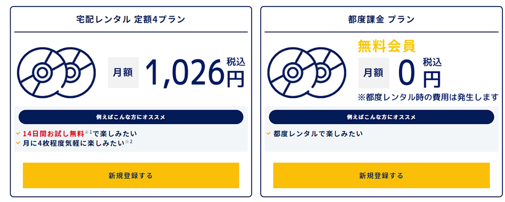 プランは2種類で「宅配レンタル 定額4プラン」が人気です