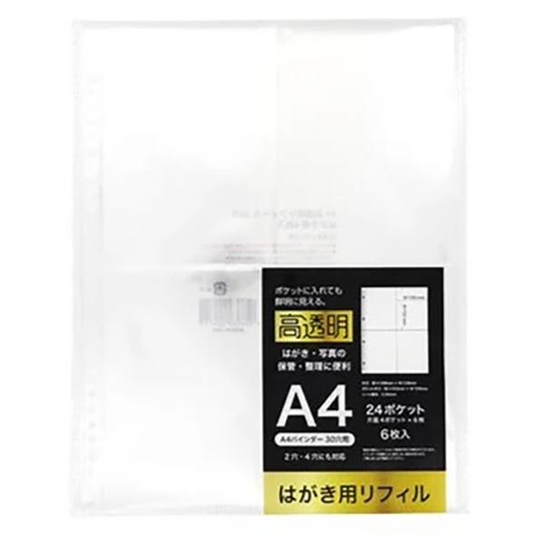 A4 高透明リフィール 30穴 はがき用 6枚入 110円(税込)