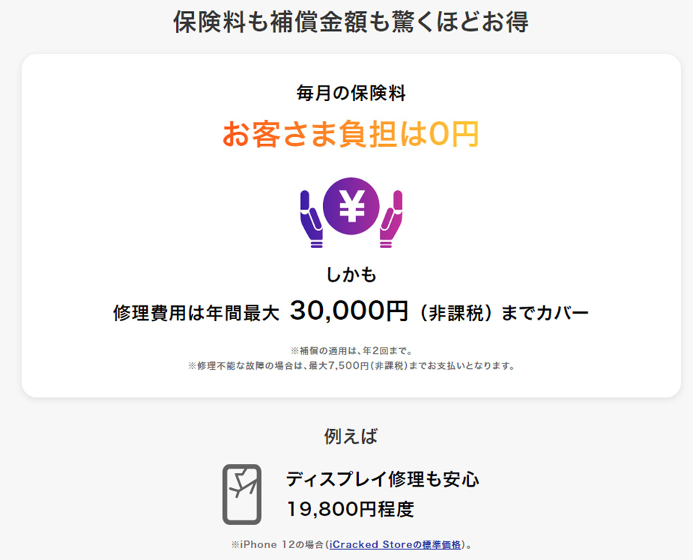 - スマホが壊れても安心の「修理保険」もついてくる!