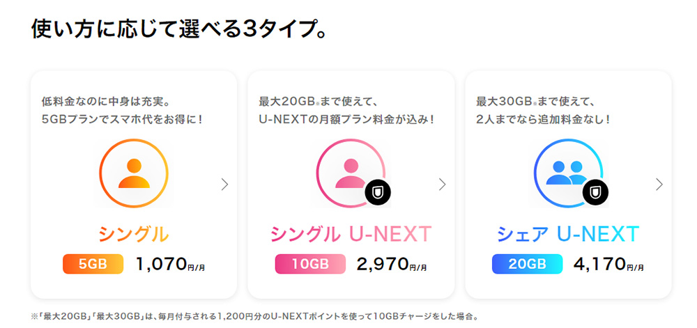 携帯会社といえば様々なプランですが「U-NEXT」は3プランあります。